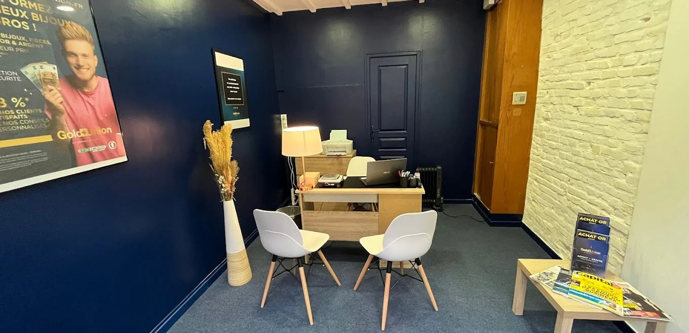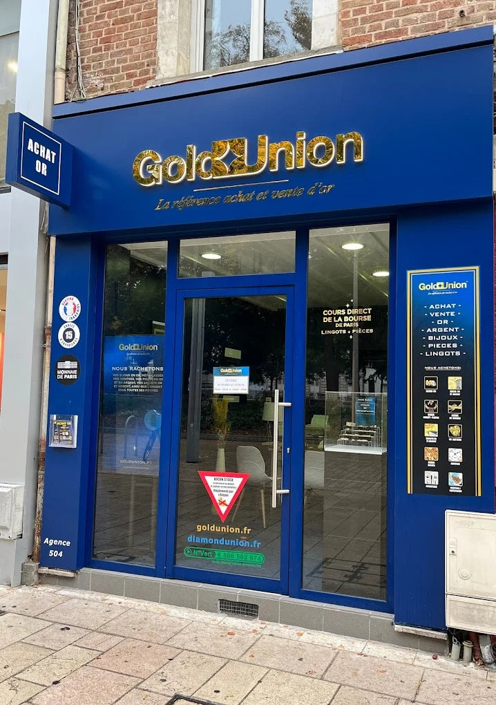 By contacting our team at the Amiens agency, specialized in the purchase of gold and silver, you are guaranteed to exchange with specialists, but you can also benefit from all the Gold Union advantages via our e-commerce site. Whether for the sale or purchase of gold, Gold Union is committed to providing you with: · Secure delivery: Gold Union manages and controls the entire order and delivery process. In addition, all merchandise sent is 100% insured, so that your buying or selling experience takes place in the best conditions. Find your home delivery in 5 to 7 days; · Our customers are satisfied and have voted us Best Price on the market. Depending on the gold price, we offer a fair price; · No surprises! You can find our conditions on our site or in an agency. All costs are explained and detailed and no additional costs will be asked of you (the prices include sealing costs); · All our products are certified. Bars or coins, gold or silver, we work with banking partners across Europe.