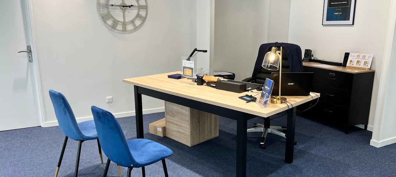 You can come and meet us, in our Gold Union agency in Châtellerault, with or without an appointment. We welcome you with pleasure from Tuesday to Saturday, from 9:30 a.m. to 12:30 p.m. and from 2:30 p.m. to 7 p.m. For more information, do not hesitate to contact us by phone! Alternatively, if you would like to book a specific time slot with one of our gold and silver buying experts, you can use the online form. Simply provide your contact details, as well as the time and day you would like to come and meet us. We will respond to you as quickly as possible! Our agency is easy to find in Châtellerault, and you will recognize from afar the gold letters on a dark blue background on our storefront. Quickly open the doors of our Gold Union counter: you will immediately be welcomed into a very warm atmosphere. It’s important to feel comfortable talking about topics as important as investing in gold! We can answer all your questions, whether they concern the price of gold, the purchase of silver bars, solutions for conserving bars or the repurchase price of old jewelry.