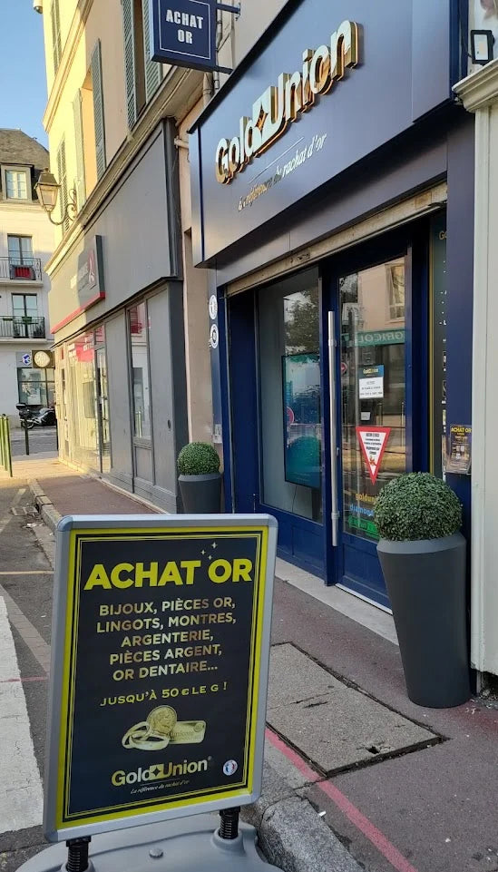 Sébastien, our agency manager, as well as our entire Dreux team, are delighted to welcome you from Tuesday to Saturday, from 9:30 a.m. to 12:30 p.m. and from 2:30 p.m. to 7 p.m. Meet at 3 rue Parisis, in the city center of Dreux. You can come without an appointment, but if you would like to book a slot with one of our gold buying specialists in Dreux, contact us by telephone on 02 34 69 32 89. You can also send us a message via the form available on our site. It only takes a few moments, since you just need to enter your name, your first name, your telephone number, your email address, and the time and date you would like to come and meet us. Remember to accept the “I accept the privacy policy” box to confirm the appointment. Our Gold Union agency with its dark blue storefront is located not far from the Dreux post office. To come see us, head towards the city center, towards the pedestrian rue Maurice Violette. With extensive expertise in the field of investment in gold and silver, but also in the repurchase of gold jewelry, we welcome you in a friendly and relaxed atmosphere.